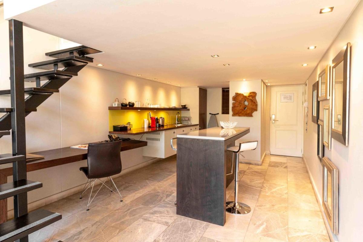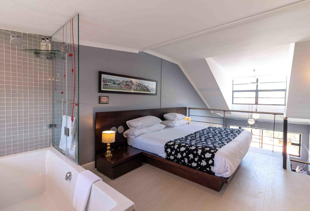 The gallery captures the artistic interiors of rooms and suites, with bold design choices and spacious layouts. Images highlight the plunge pool, cozy balconies, and the surrounding Gardens neighborhood with its mix of leafy streets and lively dining.